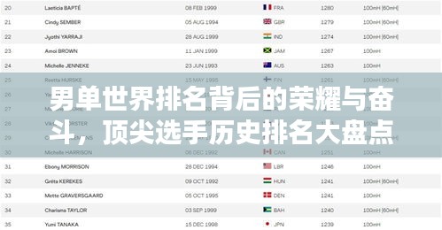 男单世界排名背后的荣耀与奋斗,顶尖选手历史排名大盘点